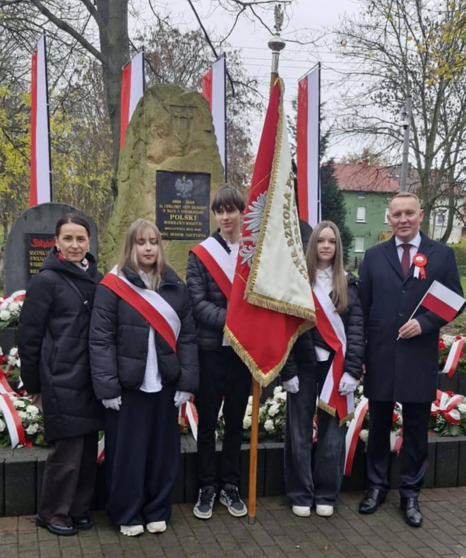 Poczet Sztandarowy naszej szkoły wziął udział w gminnych obchodach Narodowego Święta Niepodległości. 🇵🇱